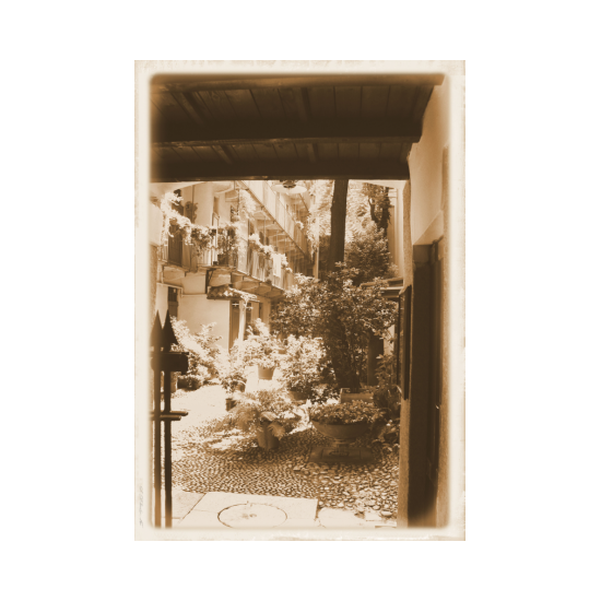 Fotografie attuali, trattate con la tecnica all'albume, sovrapposte a carte antiche